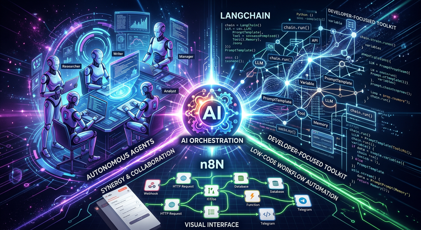 When scanning the market, three distinct names consistently dominate the conversation: LangChain, CrewAI, and n8n. Each of these tools promises to solve complex automation challenges, but they take completely different approaches to getting the job done. One approach offers raw coding blocks for absolute developer control. Another introduces virtual teams of AI personalities that collaborate to solve problems. A third provides a visual, drag-and-drop interface where non-technical users can connect to business applications without writing a single line of code. Choosing the wrong path can lock an entire engineering department into a costly, frustrating architecture for years. Therefore, finding the best AI orchestration framework for specific business goals is critical. This guide explores and compares these three powerful tools in simple terms, assisting organizations in making the right decision for the B2B SaaS environment.